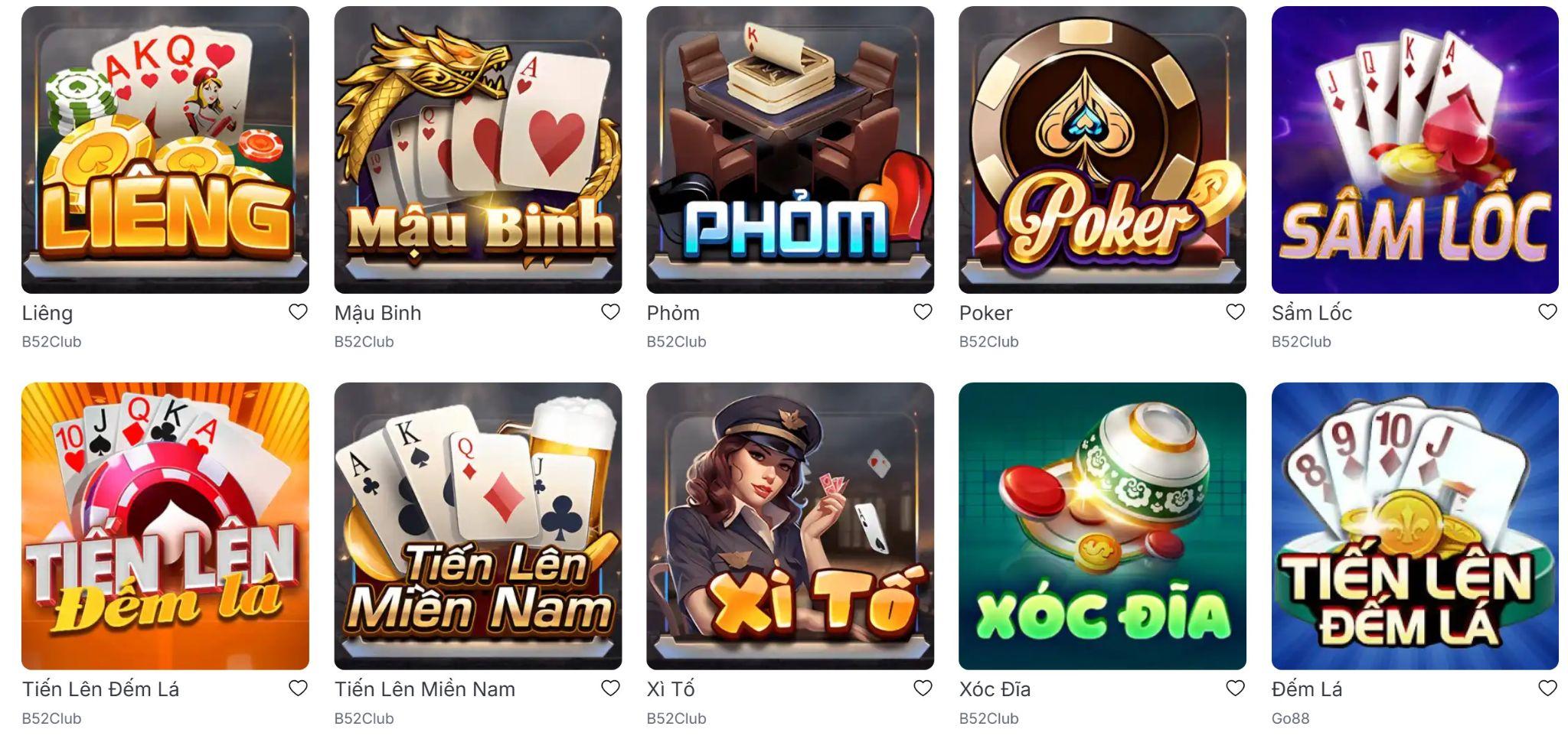 Từ những trò chơi truyền thống như Tiến Lên, Phỏm đến các biến thể hiện đại như Mega Poker, mỗi game mang đến trải nghiệm độc đáo. Hệ thống phân loại thông minh giúp người chơi dễ dàng tìm kiếm game phù hợp với trình độ và sở thích cá nhân.